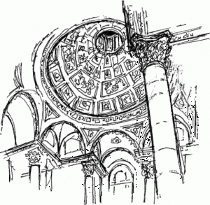 The church dome was damaged and most of the buildings around the church were badly damaged or destroyed.